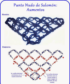 Para unir, hacéis una cadeneta tan larga como el lazo del punto Salomón y lo unís con un punto bajo al borde de la puntilla, a mi me salen 5 cadenetas